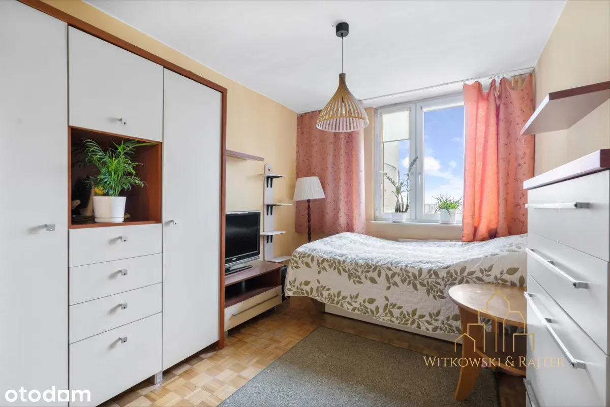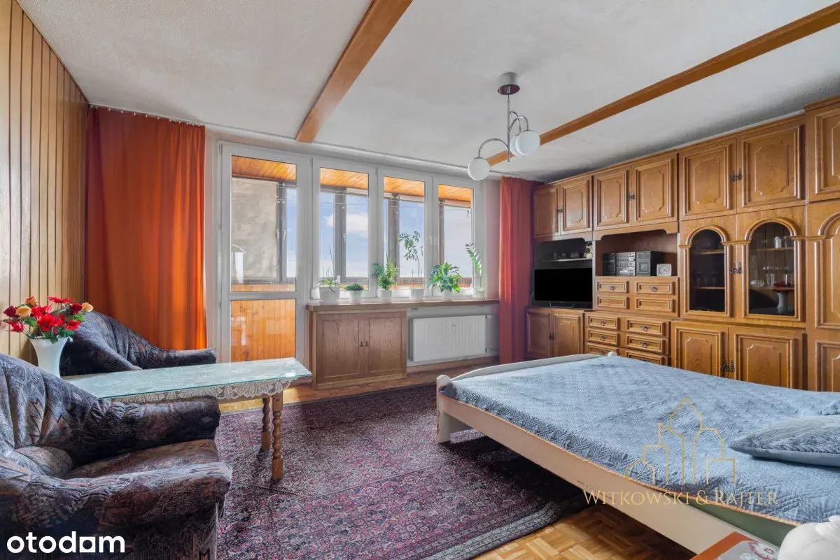 Mieszkanie 60,3 m² w pełnym rozkładzie – każde pomieszczenie z wejściem z przedpokoju. 12 piętro w 15-piętrowym budynku z dwiema nowymi windami. Układ: salon z wyjściem na zabudowaną loggię, 2 sypialnie, widna kuchnia, łazienka, osobne WC. Dodatkowo zabudowany korytarz ok. 7 m² (dużo miejsca do przechowywania) oraz piwnica ok. 3,5 m². Mieszkanie do remontu, ale zadbane – okna PCV, nowe grzejniki, wymienione piony. Dwustronna ekspozycja – dobre doświetlenie. Budynek z lat 70., parking dla mieszkańców (szlaban). Stan prawny: spółdzielcze własnościowe bez KW, grunt nieuregulowany – tylko gotówka. Czynsz ok. 1400 zł + prąd i gaz.